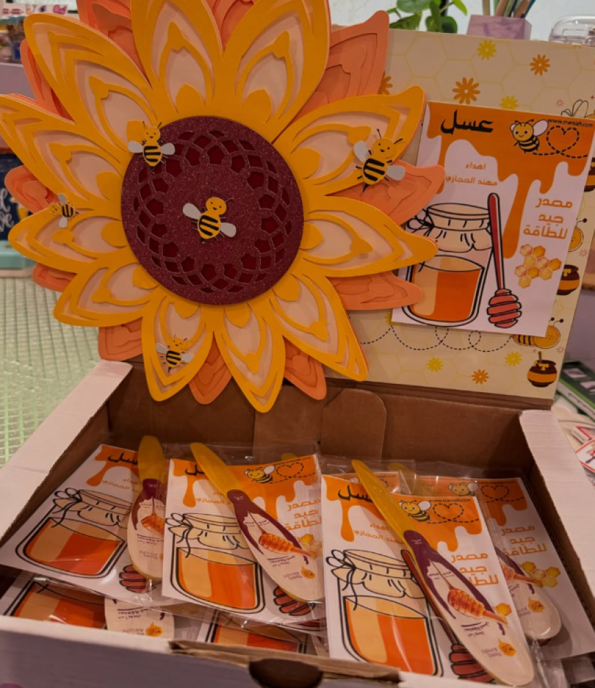 - التوزيع: يمكن توزيعها كهدايا في المناسبات الدراسية، أو كجزء من حملات توعية حول فوائد العسل.
